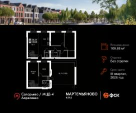 Продаётся 3-к квартира 88 общей площадью 109.66 кв.м на 3-м этаже 3 этажного дома. Без отделки.
