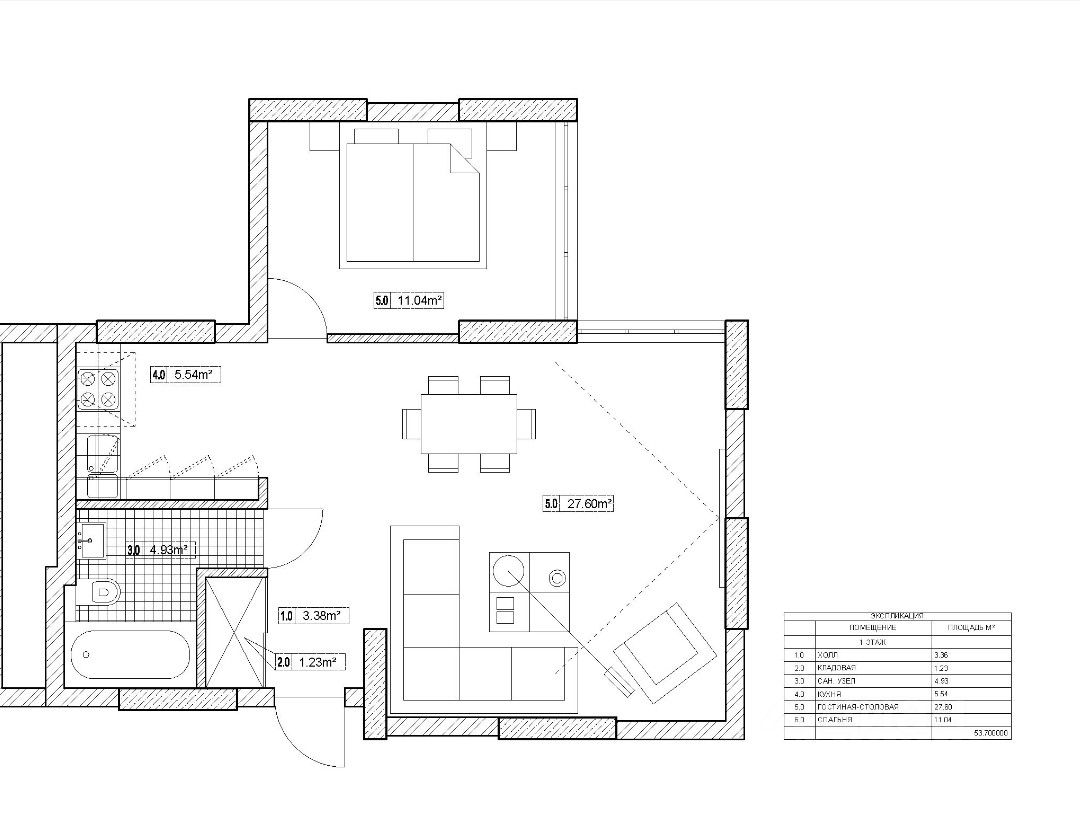 53,7 м²