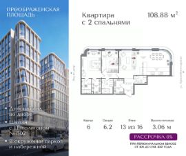 Квартира на 13 этаже в жилом комплексе премиум-класса "Преображенская площадь". Общая площадь: 108.88 кв.м.
