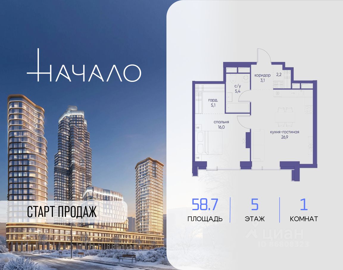 Начало - футуристический дом на Пресне в нескольких минутах от Сити и Садового кольца. Проект по-настоящему космического масштаба, где есть все, чтобы раскрыть себя и свои возможности.