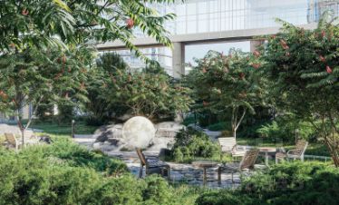 Открытый променад - сквозной маршрут на крыше стилобата с зонами отдыха, занятий спортом, детских игр и совместной работы. Все площадки плавно связаны между собой прогулочной дорожкой.