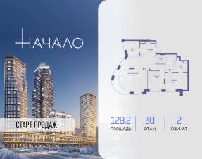 В престижном районе Пресня, на перекрестке делового и исторического центров Москвы, продается двухкомнатная квартира площадью 128.20 кв. м без отделки. Квартира находится на 30 этаже 48-этажного дома, в новом элитном жилом комплексе "Начало" от девелопера "Донстрой". Реализация проекта запланирована на 1 квартал 2030 года.