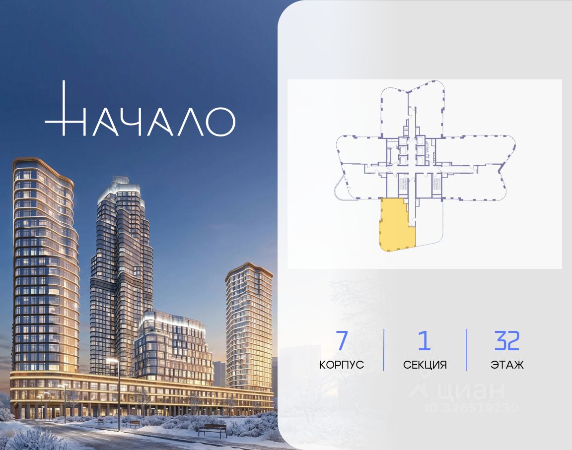 В престижном районе Пресня, на перекрестке делового и исторического центров Москвы, продается двухкомнатная квартира площадью 137.10 кв. м без отделки. Квартира находится на 32 этаже 48-этажного дома, в новом элитном жилом комплексе "Начало" от девелопера "Донстрой". Реализация проекта запланирована на 1 квартал 2030 года.