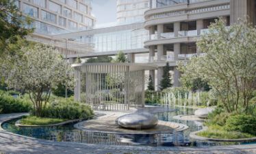 Открытый променад - сквозной маршрут на крыше стилобата с зонами отдыха, занятий спортом, детских игр и совместной работы. Все площадки плавно связаны между собой прогулочной дорожкой.