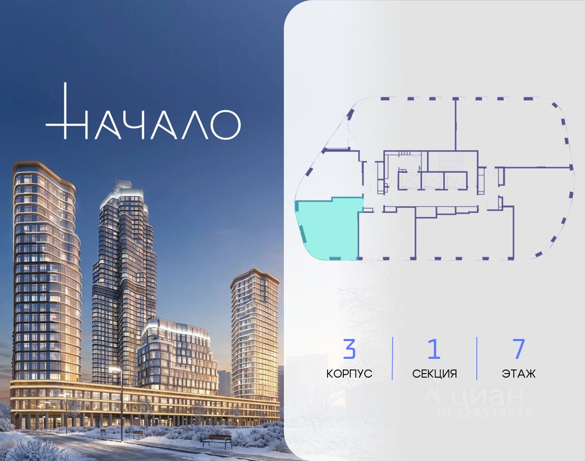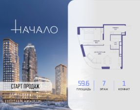 В престижном районе Пресня, на перекрестке делового и исторического центров Москвы, продается однокомнатная квартира площадью 59.60 кв. м без отделки. Квартира находится на 7 этаже 24-этажного дома, в новом элитном жилом комплексе "Начало" от девелопера "Донстрой". Реализация проекта запланирована на 1 квартал 2030 года.