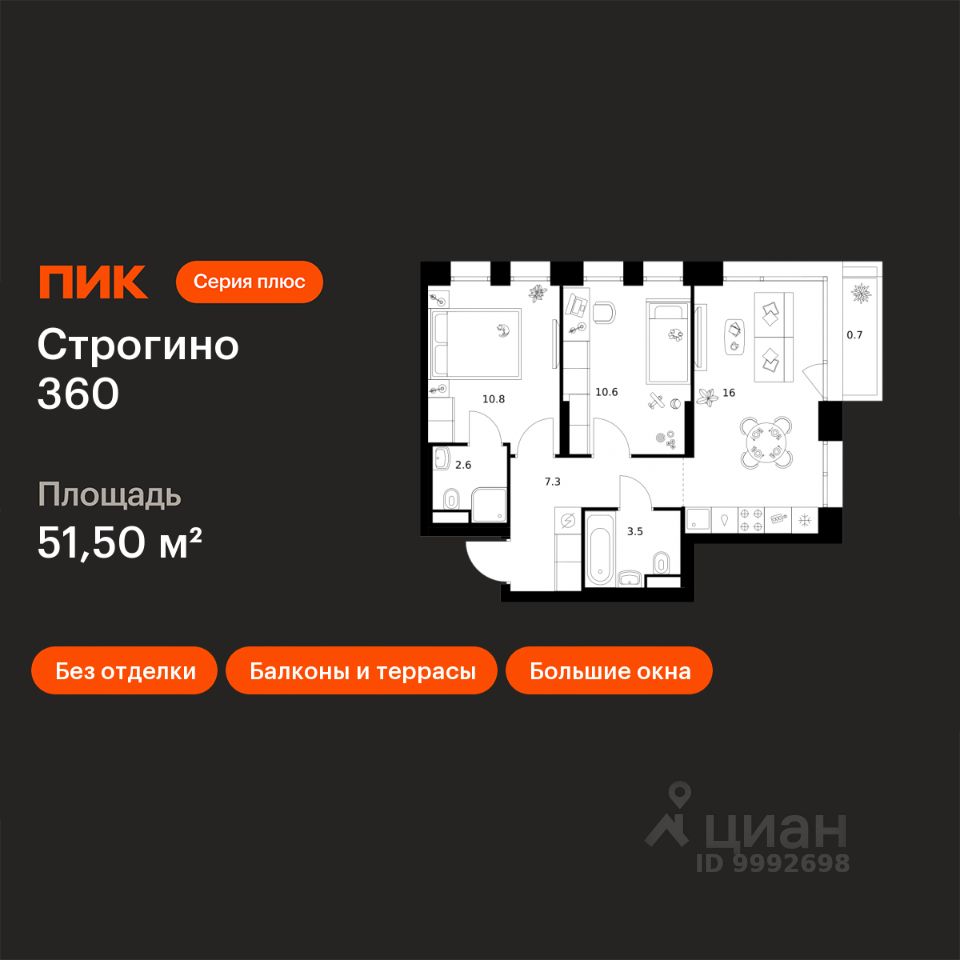 Новостройка! Продается 2-комн. кв-ра площадью 51,5 кв.м, (Корпус 1.1.2, Секция 2) 6 этаж 30-этажного дома в Строгино 360 от ПИК. Проект, где каждый день будет наполнен гармонией и новыми возможностями, где можно найти идеальный баланс между энергией большого города и спокойствием природного окружения. Это настоящая экосистема в окружении четырех парков и набережной Москвы-реки, где современная архитектура, умные технологии и продуманная среда создают новое качество жизни.