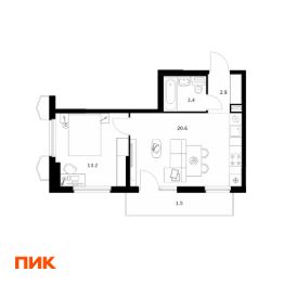 Продаётся 1-комн. квартира площадью 41,6 кв.м на 5 этаже 24 этажного дома (Корпус 22.2, Секция 2) проекта ПИК Бусиновский парк. Светлый просторный подъезд на уровне земли, функциональная планировка, большие окна, c отделкой.
