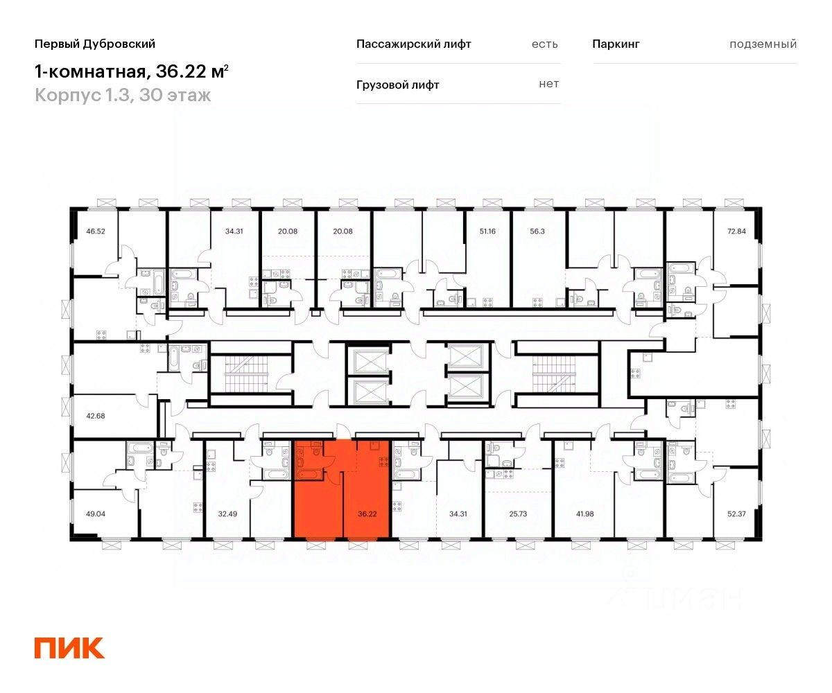 Продаётся 1-комн. квартира площадью 36,22 кв.м на 30 этаже 33 этажного дома (Корпус 1.3, Секция 1) проекта ПИК Первый Дубровский. Светлый просторный подъезд на уровне земли, функциональная планировка, большие окна, c отделкой.