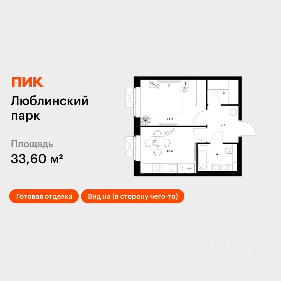 Продаётся 1-комн. квартира площадью 33,6 кв.м на 22 этаже 25 этажного дома (Корпус 17, Секция 1) проекта ПИК Люблинский парк. Светлый просторный подъезд на уровне земли, функциональная планировка, большие окна, c отделкой.