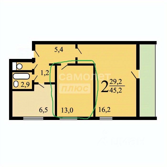 Вашему вниманию предлагается просторная и уютная выделенная доля(комната) в 2-х комнатной квартире 14 м² с ремонтом и мебелью! .