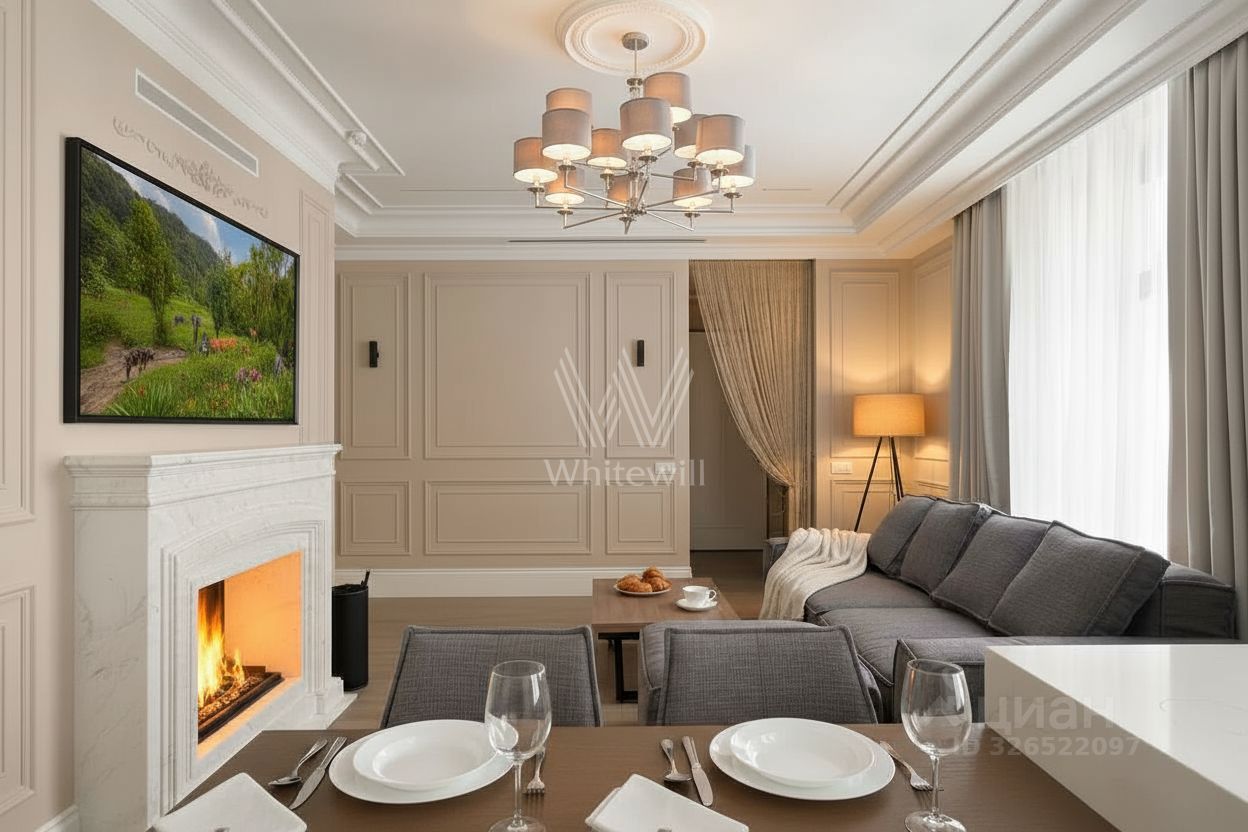 Просторная квартира с одной спальней, площадью 67 м² в клубном доме делюкс-класса "Абрикосов" рядом с Чистопрудным бульваром.