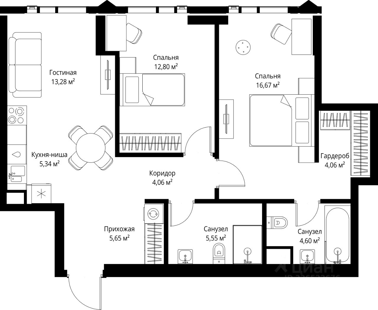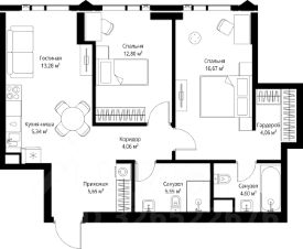 В продаже квартира площадью 72.01 м² без отделки на 29 этаже 46 этажного дома. Квартира расположена в корпусе Leo.