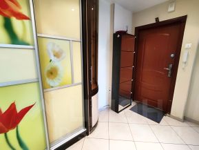 В квартире есть вся необходимая техника и мебель: стиральная машина, холодильник, телевизор, письменный стол, места для хранения одежды и обуви. Также предусмотрено три спальных места и полностью оборудованная кухня.