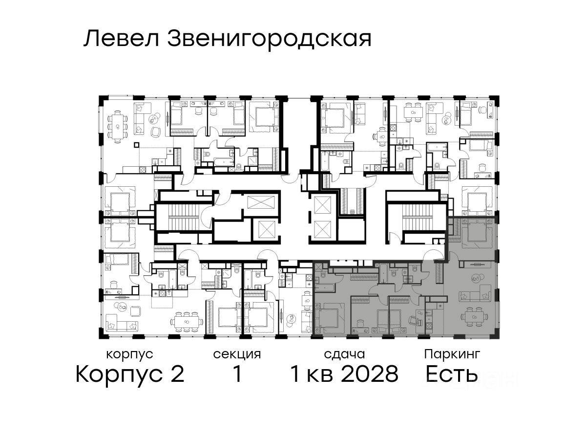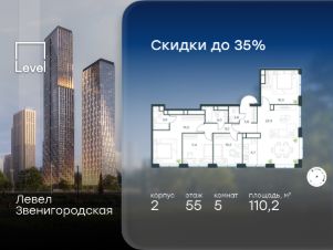 В жилом квартале продаётся многокомнатная квартира площадью 110.20 кв.м без отделки. Квартира расположена на 55 этаже 64 этажного корпуса 2 в жилом комплексе комфорт класса Левел Звенигородская (компания Level Group/Левел групп).