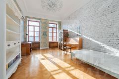 Главная особенность квартиры уникальная отделка, воплотивший в себе самые свежие и смелые дизайнерские идеи, поддерживающая архитектуру дома. Сохранены и отреставрированы многие исторические детали деревянный паркетный пол, старинная лестница и галерея с балюстрадой, филигранная лепнина, роскошная хрустальная люстра.