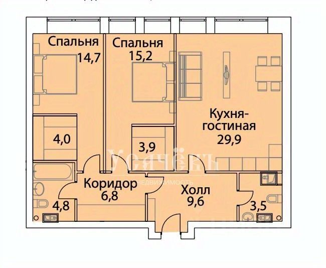 Апартаменты полностью укомплектованы мебелью и техникой — всё остаётся покупателю: