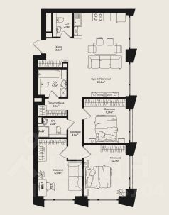 Квартира формата евро 4-х комнатная в ЖК бизнес-класса Ракурс.