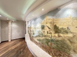 Индивидуальный дизайн: Холл украшен авторской фреской, а кухня оборудована гарнитуром из натурального дуба со встроенной техникой. Гостиная предлагает домашний кинотеатр с акустикой и плазменным телевизором. Кабинет выполнен из натурального дуба с кессонным потолком и библиотечными шкафами.