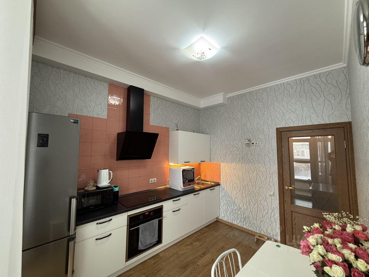 В квартире сделан косметический ремонт, установлена стильные кухни со встроенной индукционной панелью и духовым шкафом, фильтр аквафор, вытяжка.