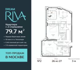 Продаётся Квартира с 2 спальнями квартира на 26 этаже 27-этажного дома (2 корпус).