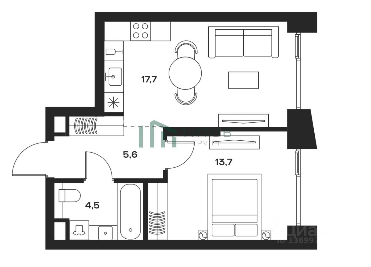 Формат Евро-2: кухня-гостиная + изолированная спальня