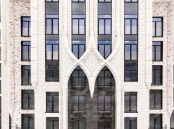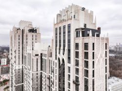 Архитектура проекта - современное прочтение торжественного и изящного стиля ар-деко, который, как и сталинский ампир, сформировался в результате развития идей чикагской школы. В доме 6 секций, 115 вариантов продуманных планировочных решений - от уютных студий до просторных пентхаусов с дровяным камином. В каждой квартире предусмотрен полный комплекс систем комфорта: принудительная центральная вентиляция с фильтрацией воздуха, очистка воды до уровня питьевой, круглогодичное горячее водоснабжение, быстрые бесшумные лифты, которые идут прямо в паркинг, продуманная подготовка под кондиционирование и другие технологические решения.