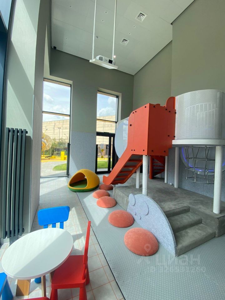 Красивый холл с дизайнерской отделкой, в котором оборудована стойка ресепшен и мини-гостиная для отдыха и переговоров (лобби) детская игровая комната.