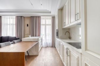 - Наличие пяти окон (включая ванную комнату) и высоких потолков гарантирует обилие света и воздуха;