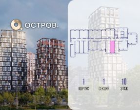 Продаётся квартира от застройщика: общая площадь 28.00 м², жилая 14.40 м², кухня 5.00 м², 10-й этаж, жилой квартал "Остров 14", корпус 1 (секция 1). Срок сдачи: 2 квартал 2029 года.