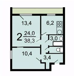 Квартира находится на 11 этаже, всего 14 этажей, для ежедневных поездок имеются два пассажирских лифта. Общая площадь - 38,3 м², кухня - 6,2 м², высота потолков - 2,64 м, большая лоджия, совмещенный санузел, все подготовлено к воплощению ваших дизайнерских идей.