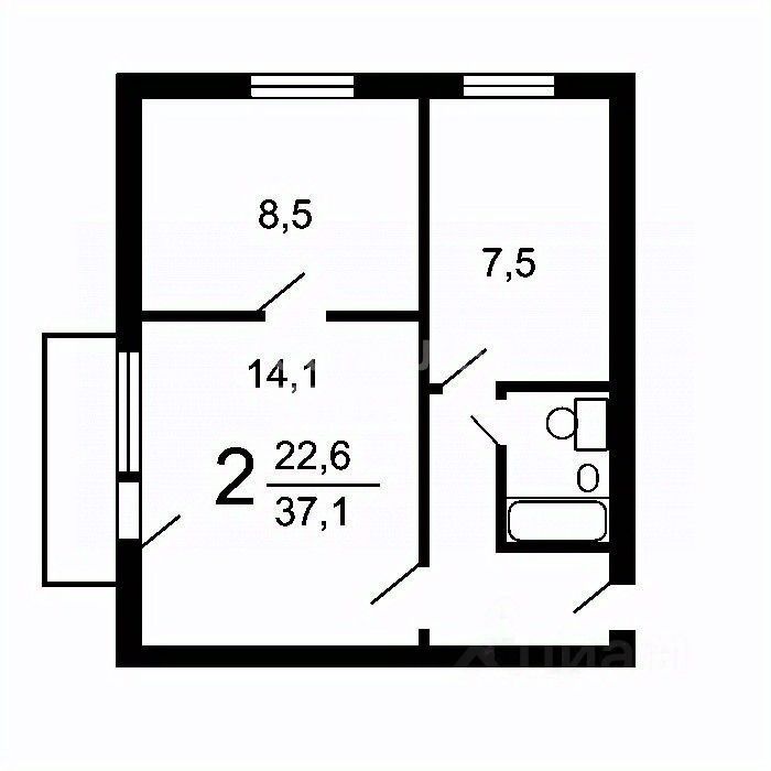 • Две комнаты 9.4 и 14.1 метров квадратных