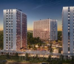 Это 3 дома высотой 16 этажей с приватными зелеными дворами. Территория квартала граничит с зеленой рощей, а через дорогу — лесопарк для ежедневных прогулок. Рядом 7 фитнес-клубов, магазины, кафе, медицинские центры, а также школы и детские сады.
