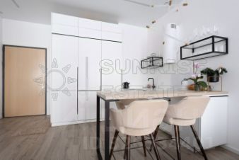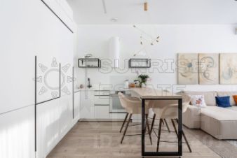 - Высокие потолки 3 м и широкоформатные окна высотой 2,2 м, за счет чего квартира наполнена светом и воздухом!