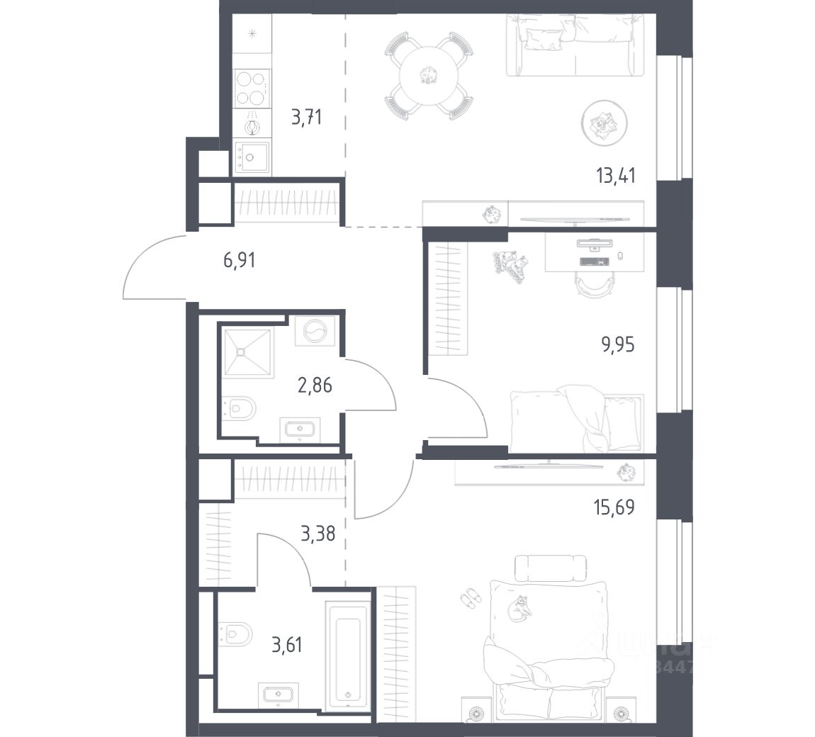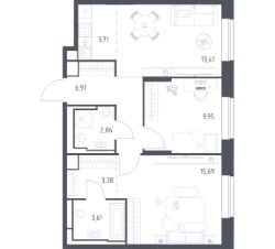 Строим кварталы для жизни с заботой о будущем. Предлагаются 2-комнатные апартаменты бизнес-класса площадью 59,52 кв.м в корпусе 4.1 на 9-м этаже, в жилом комплексе "Верейская 41".
