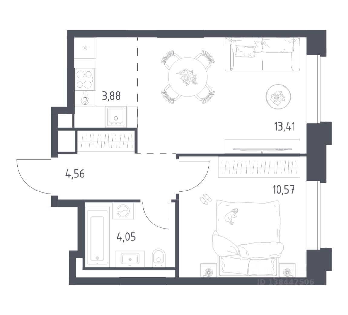 Строим кварталы для жизни с заботой о будущем. Предлагаются 1-комнатные апартаменты бизнес-класса площадью 36,47 кв.м в корпусе 4.1 на 9-м этаже, в жилом комплексе "Верейская 41".