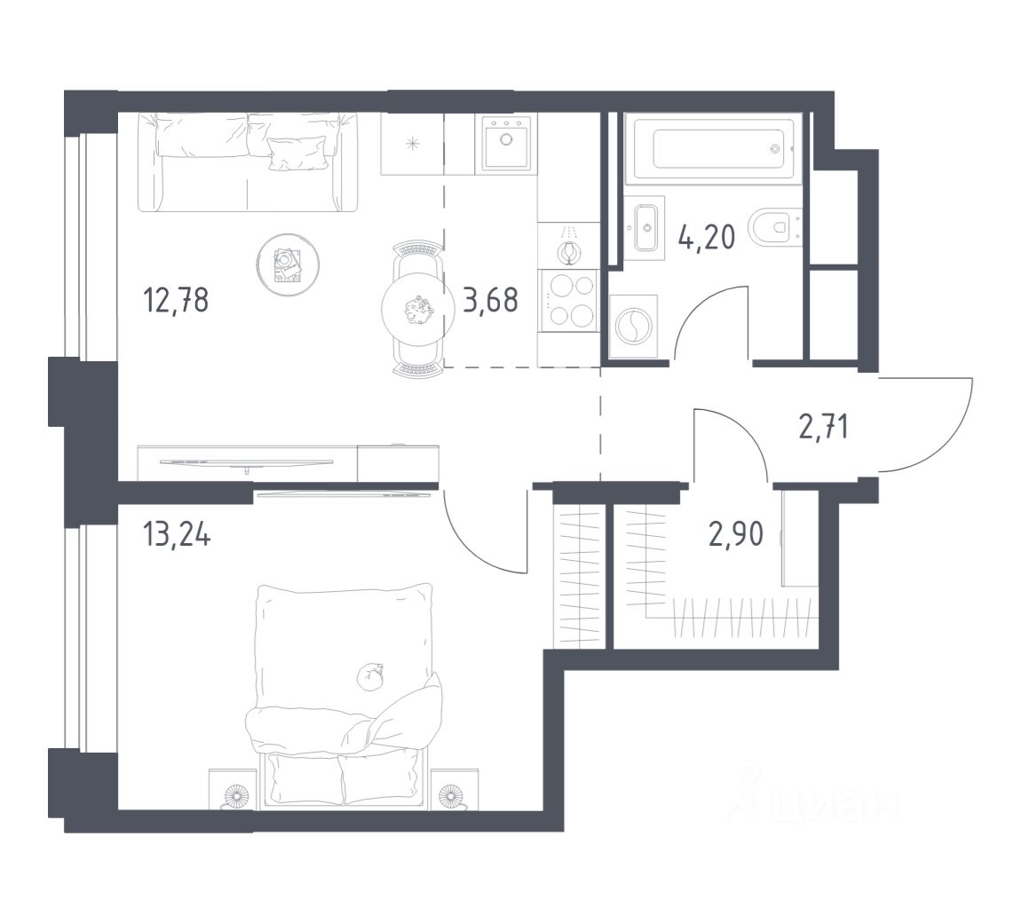 Строим кварталы для жизни с заботой о будущем. Предлагаются 1-комнатные апартаменты бизнес-класса площадью 39,51 кв.м в корпусе 2.2 на 14-м этаже, в жилом комплексе "Верейская 41".