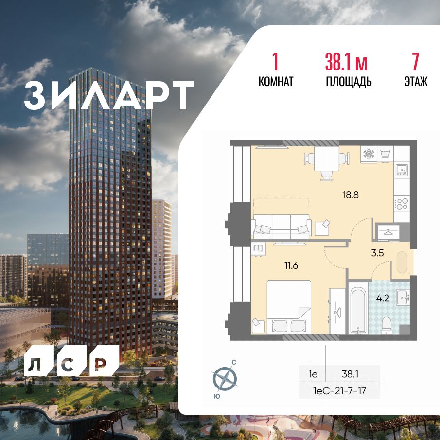 Продается 1-комн. кв-ра площадью 38.10 кв.м на 7 этаже 43 этажного монолитно-кирпичного дома в ЖК "ЗИЛАРТ" от Группа ЛСР. ЗИЛАРТ СПАРК — новый дом бизнес-класса в жилом квартале "ЗИЛАРТ" высотой 150 метров. Он сочетает в себе современную архитектуру, передовые технологии и восхитительные виды на ландшафтный парк "Тюфелева Роща" и бульвар Братьев Весниных. Близкое расположение к музейно-выставочному центру "Коллекция" и концертному залу создает вдохновляющую атмосферу места, где переплетаются жизнь и творчество.