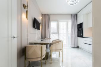 Панорамные окна, высокие потолки. Дизайнерский ремонт с дополнительной шумоизоляцией. Квартира полностью укомплектована мебелью и техникой.