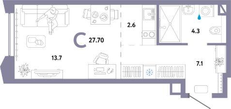 Продаётся студия в строящемся доме (Дом 1), срок сдачи: II-кв. 2026, общей площадью 27.7 кв.м., на 15 этаже. Многоэтажные жилые дома с объектами инфраструктуры, расположенные по адресу: г. Москва, внутригородское муниципальное образование Очаково - Матвеевское, ул. Озерная, вл. 42.
