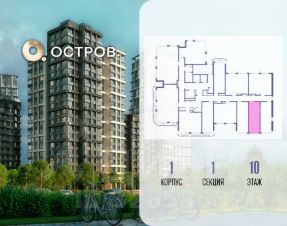 Продаётся квартира от застройщика: общая площадь 28.00 м², жилая 14.40 м², кухня 5.00 м², 10-й этаж, жилой квартал "Остров 14", корпус 1 (секция 2). Срок сдачи: 2 квартал 2029 года.