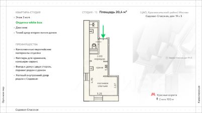 2 минуты от Высотки на Красных воротах, в ЦАО, в прямом доступе к Садовому кольцу. Район высокой деловой активности, центральные пешеходные улицы, транспортные и ж/д узлы - шаговая доступность к качественной инфраструктуре отдыха, обучения и работы в Москве.