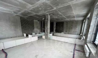 Пространство для жизни: кухня-гостиная, где поместится и большой диван, и обеденный стол для всей семьи, и две изолированные спальни для взрослых и детей.