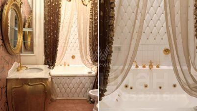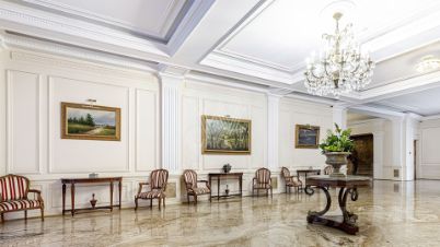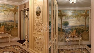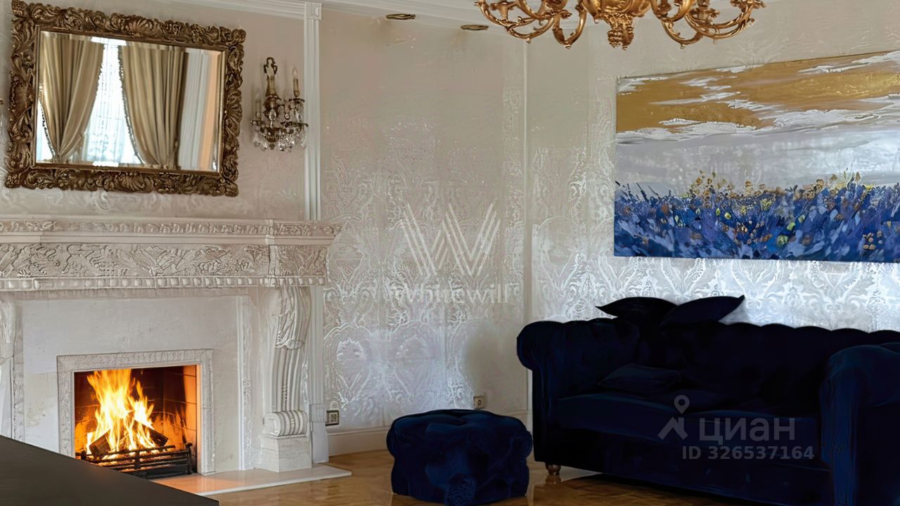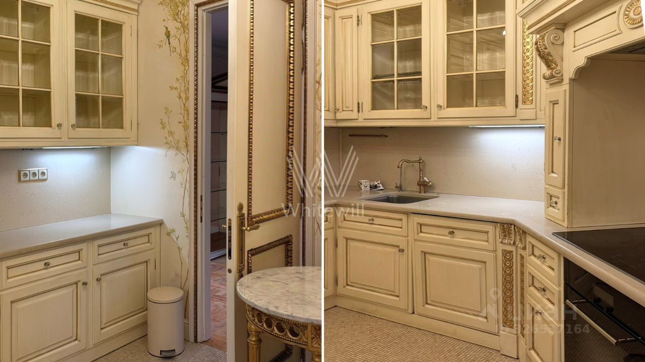 Просторная квартира с тремя спальнями общей площадью 194 м² в клубном доме "Агаларов Хаус" на третьем этаже. Интерьер оформлен в дворцовом стиле с использованием натуральных материалов. На полу выложены паркет из карельской березы с уникальной "мраморной структурой" и итальянская мозаика. На стенах обои Zambotti и художественная роспись. Ванные комнаты отделаны мрамором и украшены аксессуарами Lalique.