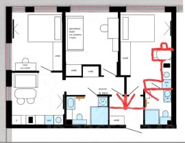 Квартира находится в активной стадии ремонта, ремонт не приостановлен, стоят стены, квартира зонально делится на части, 44 кв.м+ 20 кв.м., готовность 20 кв.м 65%. Можно убрать разделяющую перегородку и будет обычная 3 к.кв. по плану застройщика. Т.к. 2 этаж над коммерцией, возможен перенос мокрых точек. Высокие потолки, большие окна, без балкона.