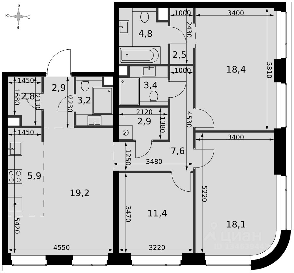 - Мастер-зона с санузлом и гардеробной. Всё для вашего комфорта и удобства, включая личный санузел и гардероб.