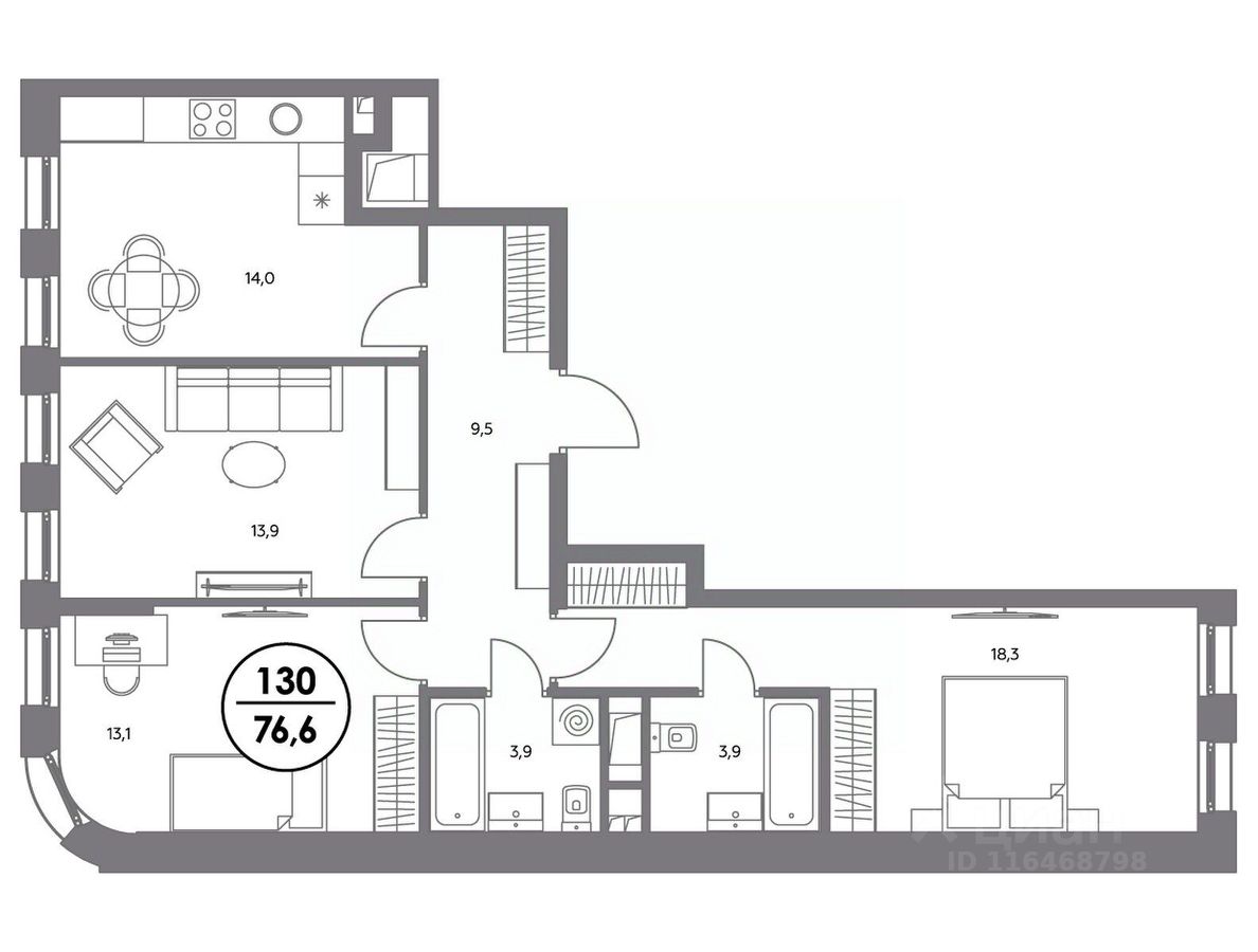 В динамично развивающемся районе Москвы, всего в 300 метрах от метро и в пешей близости от нового городского порта с протяженной набережной 13 км, свободной от автомобилей, продается 3-комнатная квартира площадью 76.60 м². без отделки.
