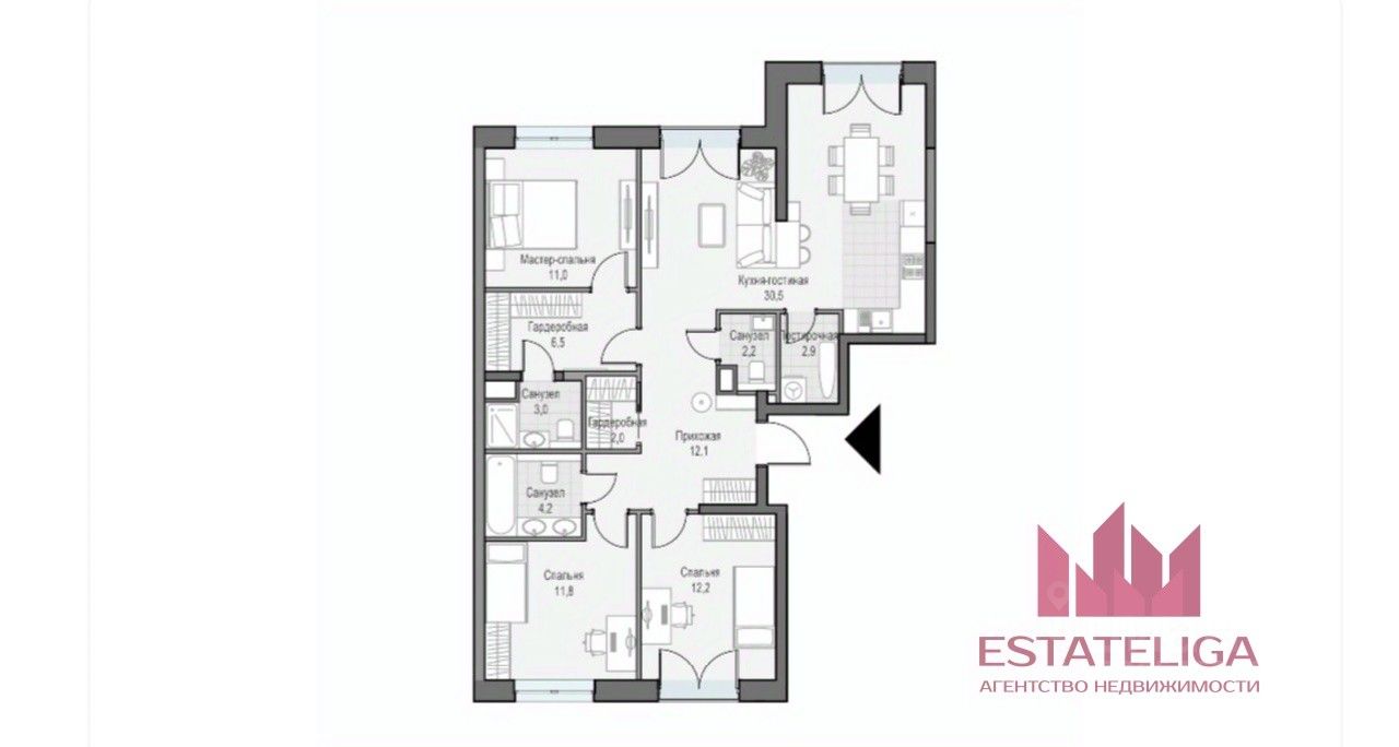 4 - Два раздельных сан.узла и гардеробные