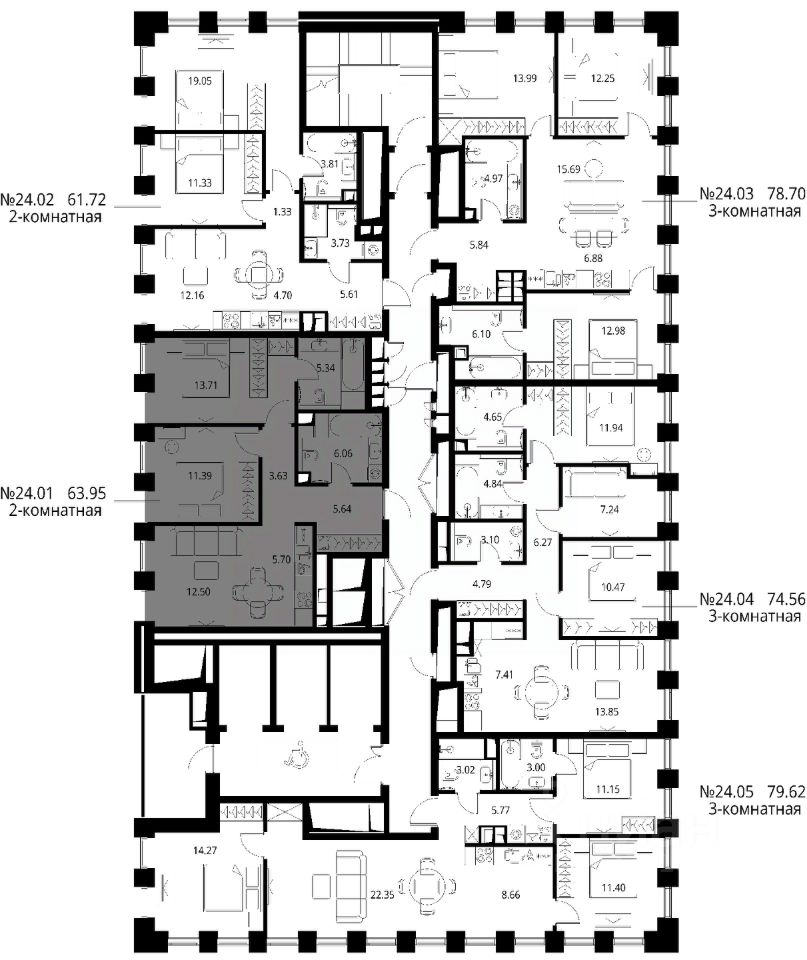 Продаётся 2-комнатная квартира общей площадью 63.95 м² с предчистовой отделкой в ЖК Сити Бэй, квартале Норс, на 24-м этаже 27 этажного дома.
