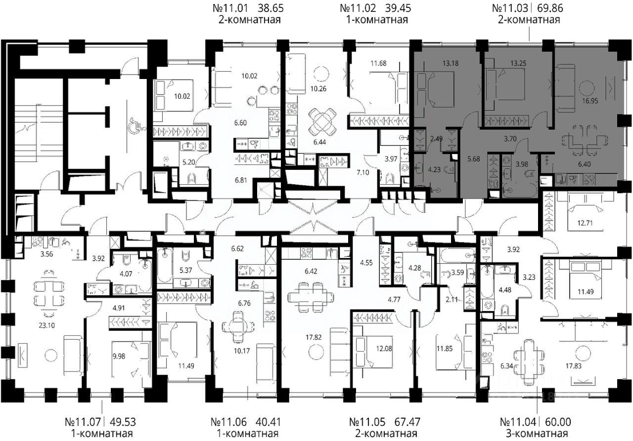 Продаётся 2-комнатная квартира общей площадью 69.86 м² с предчистовой отделкой в ЖК Сити Бэй, квартале Норс, на 11-м этаже 21 этажного дома.