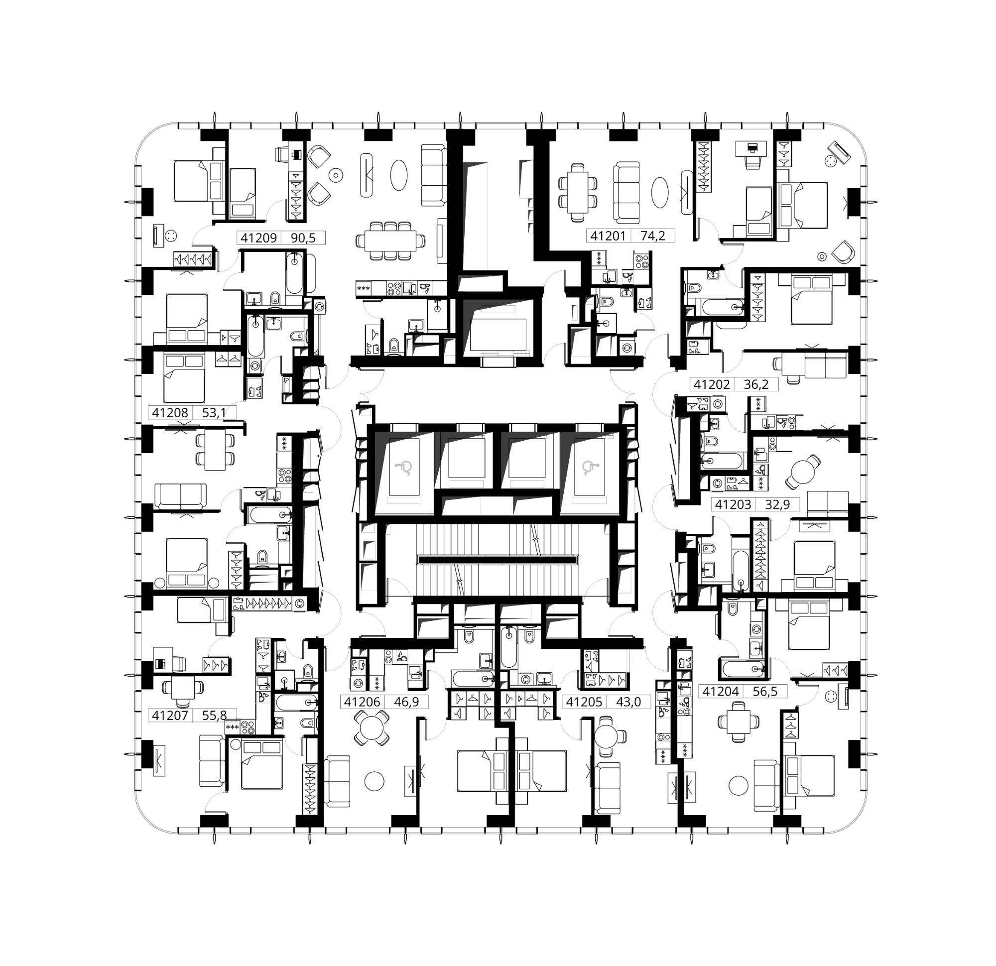 Продаётся 1-комнатная квартира общей площадью 32.90 м² без отделки в ЖК Сити Бэй, квартале Пасифик, на 12-м этаже 59 этажного дома.